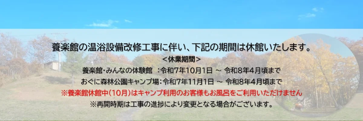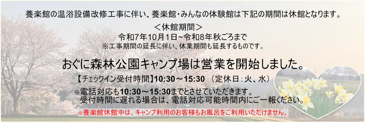 「みんなの体験館」では、おぐにならではの田舎体験、「養楽館」にはお風呂や食堂もあります。